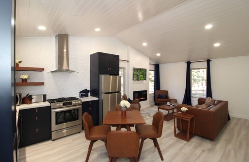 Your newly remodeled cabins provide the perfect place to unwind and relax. Each cabin has been remodeled from head to toe and features new stainless appliances, new cabinets, quartz countertops, leather furniture, electric fireplace, towel warmer, premium linens and new kitchen items including new stoneware dishes, glasses, and cooking/bakeware.