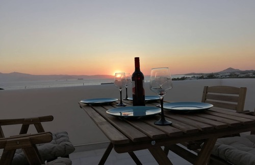 Two floor cycladic house with stunning sunset and sea view, located at the end of the world famous sandy beach of Plaka, providing a peaceful environment for families and small group of friends.