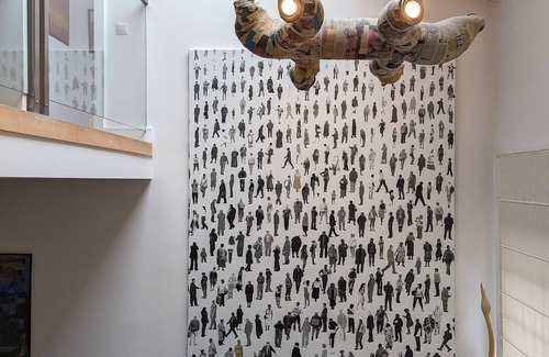 Two-level apartment located in the center of Kazimierz. Perfect for families or friends, full of space and pictures. It's located on the top floor of a tenement house with an elevator, it's fully equipped. The apartment has two bedrooms, two bathrooms (one with a bathtub), a living room with a sofa bed and a kitchen, as well as a space with a desk and a sofa on the second level. There are plenty of restaurants, cafes and shops nearby, 2 minutes walk to the nearest tram stop, 15 minutes to the Wawel Castle.