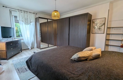 Outside: You can enjoy the owners' garden, which features outdoor furniture. Parking is available in the courtyard with access to a garage. Two rooms are at your disposal, accommodating 1 to 5 people maximum. Both rooms have separate entrances and are located on the first floor. They open onto a breakfast lounge with a microwave, a Tassimo coffee maker, a kettle, and a small refrigerator. The Eugène room has a 160x200cm bed and a television. The Gabrielle room has a 160x200cm bed and a 120x190cm sofa bed. Bathroom with bathtub, toilet, and double sink. Outside: You can enjoy the owners' garden, with outdoor furniture. Parking is available in the courtyard with access to a garage.