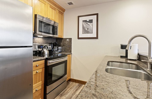 This unit has been recently renovated including new fireplaces and bathroom remodels. Enjoy this two-bedroom unit. Living area with fireplace, balcony, flatscreen TV with DirecTV, DVD, sofabed, seating at both table and bar. Fully equipped kitchen with granite and slate. Master suite with king bed, fireplace, balcony, deep soaking jetted tub, and more. Second bedroom with a twin over queen style bed with space to sleep three and full bath. Did we mention heated bathroom floors? This unit will give you a comfortable and luxurious place to unwind after a day of adventuring!
