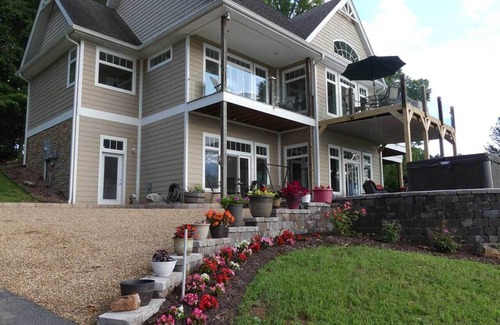 VIRGINIA CREEPER IS NOW OPEN from our home to Abingdon. Although Damascus is rebuilding, Abingdon is fine and offers even more activities, breweries, restaurants. There are many other parks in the area that are still open! Our home suffered no damage, so we are here to accommodate those of you wishing to partake of the beautiful fall views! We are a Virginia highlands country estate on 4 acres. Peaceful, stunning panoramic views, beautiful outdoor areas. NO CLEANING OR PET FEES! The Provence suite is the largest of two suites on the patio level (owners live on the upper level) and is separated from the Tuscany suite by a large shared game room with air hockey, ping-pong, electronic darts, game table, Exercycle, piano. Peaceful, quiet and convenient! You won't find another property with views like this. Bedroom with covered patio and awesome views, private bath, large dining room with kitchenette, living room with large TV and very comfortable queen sofa bed. Can accommodate up to 4 guests . Private and shared patio with waterfall, fire pit, outdoor furniture, and new Hot Springs hot tub. Up to 2 pets welcome with owner's approval . Golden retriever on site. also check VRBO#3503849 for second suite.