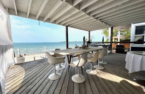 3 sprawling decks on 3 levels. with breathtaking views of wide white sandy beach and lake Erie. 1.5 hour from downtown Toronto.