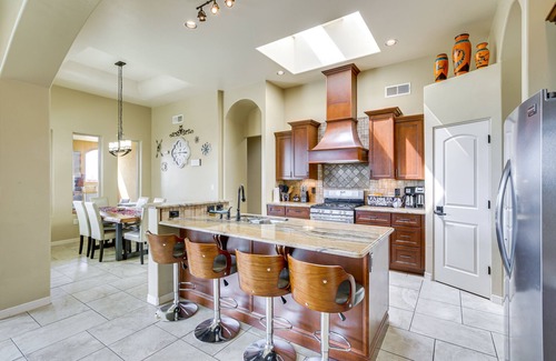 Discover New Mexico’s distinctive culture and stunning landscapes when you stay at this Las Cruces vacation rental featuring a robust outdoor living area complete with a gas grill, wood-burning fireplace, and artificial turf perfect for kids or dogs to play on! This airy 4-bedroom, 2-bath home fills up with natural light during the day and offers updated furnishings in each room. Visit Plaza De Las Cruces, attend the Southern New Mexico State Fair & Rodeo, or hike through Dripping Springs!