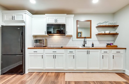 Cozy up in this gorgeous Wisconsin vacation rental nestled in the Harrison Hills of Tomahawk. Part of a converted gas station, this 1-bath studio offers a unique and stylish stay. You'll have all the indoor essentials, like free WiFi, Smart TVs, and a well-stocked kitchenette. There's always something to do, whether you're exploring the ATV/UTV trail across the street or heading out for fishing and boating. After a day of adventure, unwind in the sauna or just relax in the inviting living space.