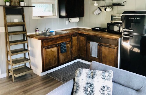 This is a lovely little home! It has a cozy, homey feel with enough space for you to be very comfortable but also enjoy the tiny home feel. It’s in an excellent location, close to whatever you may need and quick access to the freeway. Right around the corner from the amazing Shawnee Mission Park.