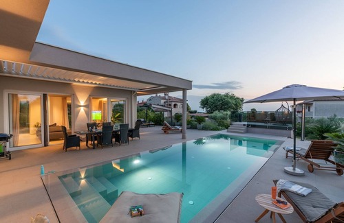 Unique villa with panoramic sea views, pool with counter-current system and salt water is located in Stranici kod Nove Vasi. Unique villa with panoramic sea views, pool with counter-current system and salt water provides accommodation, featuring Parking, Designated Smoking Area, Wellness Facilities, among other amenities. This House features Parking, Designated Smoking Area, Wellness Facilities, to make your stay a comfortable one.