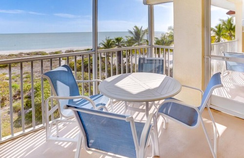 Unparalleled Direct Gulf Views from this elegant, spacious, top floor unit. Bright, elegantly tropical décor frame the views from the expansive screened in lanai off of your large open living area.