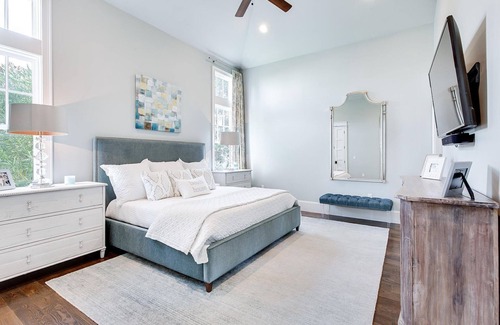 Indulge in the ultimate comfort of our primary suite on the first floor, furnished with a king-sized bed, dual vanity, a luxurious walk-in shower, and a rejuvenating soaking tub. Additionally, two charming guest bedrooms await, each offering a king-sized bed, a private bath, and a walk-in shower.