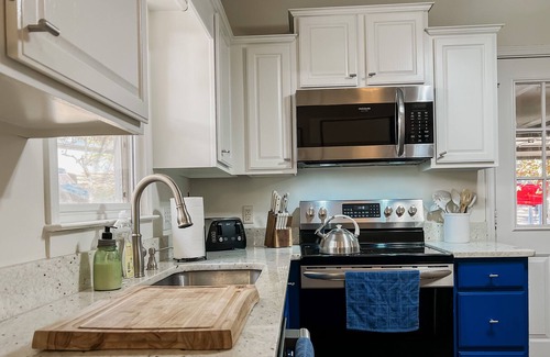 Enter using a keyless entry smart lock! Once inside the home you'll find a gate card for various amenities. Ideal for couples and small family/ friend groups seeking some Georgia mountain vibes, this fully furnished vacation home offers an excellent getaway space for anyone looking to kick back and relax in clean space. Wooded backyard and front yard. Quiet neighbors. Main features include Smart TV (Living Room & Queen Room) perfect for streaming on Hulu, Netflix, Fubo TV or anything else! Endless WiFi, fireplace with stocked wood, dining area with seating for 8! NEW Washer and Dryer. Fully equipped kitchen - microwave, electric stove/oven, toaster, blender, coffee maker & Keurig, spices, complimentary tea, breakfast bar area with stools.