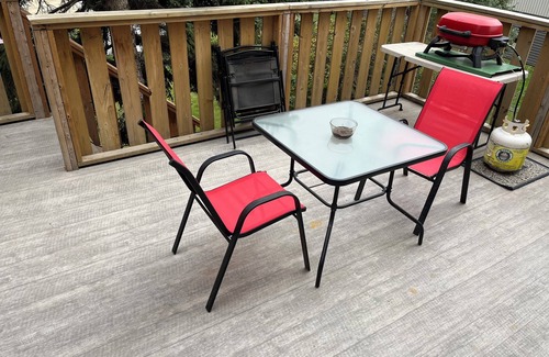 Private deck and entrance, property manager onsite, fully equipped kitchen.Board games, wifi, towels and basic kitchen spices. Local roasted coffee to start your morning off right.