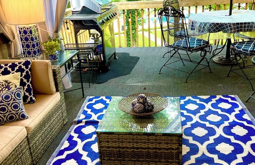 The perfect place for spending the holidays with friends or family! This lovely shared professionally decorated and totally remodeled condo boasts 2 spacious bedrooms with 2 queen beds each with plenty of closet space, dressers, TV’s and snacks/soft drinks, robe & slippers. Equipped with central AC/heat, WiFi, cable TV’s, washer & dryer, shared kitchen with coffee station & breakfast snacks, formal living room & dining room. Fully bathroom has a tub, oversized shower head and handicapped grab bars. It is also equipped with a hair dryer, soaps, shampoo/conditioner, luxurious towels, Q-tips, hand sanitizer & personal individually wrapped tooth brushes and tooth paste. Outdoor has a large covered deck with large tv, sofa, bbq grill and dining table.The pool is open Memorial Day thru Labor Day. We'll be available to answer any questions while you stay at our place. We will follow your lead for interaction and respect your privacy. Smoking is allowed and the host on premises is a polite light smoker. A professional ionizer machine is available upon request to eliminate any cigarette smell.
