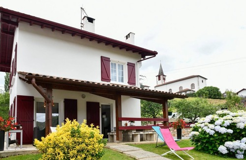 Detached house near the owner's house. Gîte 6/ 8 people. Ground floor: fitted kitchen (microwave, fridge-freezer, electric oven and gas hob, dishwasher). Living room/dining area/lounge area (wood stove, TV, DVD and CD player), storage room (washing machine), shower room, wc. Upstairs: 4 bedrooms (3 double beds, 2 single beds), shower room, wc. Covered terrace, enclosed courtyard, enclosed garden. Garden furniture, barbecue. Possibility to rent sheets, towels. WIFI internet access. Electric heating in supplement. Wood provided. Gîte in a quiet village, near the GR10 (hiking trail) 5 mins from St-Jean-Pied-de-Port and 15 mins from the Spanish border.
