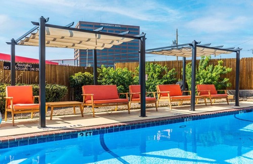 Guests have private access to the entire apartment and patio! Make yourself at home is this urban one bedroom abode with close access to the rest of Dallas! Relax on the couch while enjoying the free WIFI and Smart TV features! Cook yourself a meal in our fully equipped kitchen, and sit on the balcony. Enjoy the free seasonal pool!