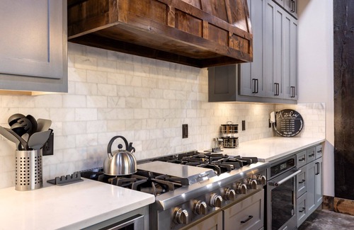 Gorgeous wood cabinets, sparkling state-of-the-art appliances, and beautiful natural light make the culinary paradise a lovely place to prepare delicious meals. Enjoy cooking in style using the modern appliances and cookware provided, then enjoy your meals on the spacious dining table or in the outdoor dining area with spectacular views.