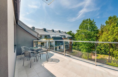 Located in Ustronie Morskie, this welcoming apartment lets you experience it all. Thanks to the convenient covered onsite parking, you can either leave your vehicle behind and let your feet make short work of the 11-minute walk to Municipal Sports and Recreation Center, or easily tackle the quick 7-minute drive to BAJKOLANDIA Amusement Park.