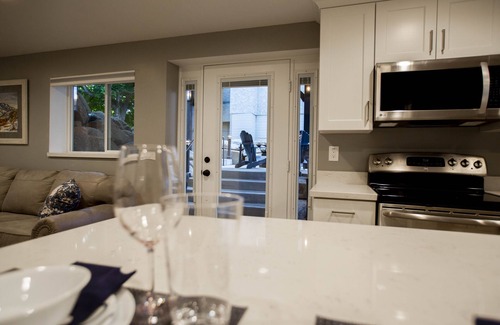 Kitchen and Family room: Open concept kitchen and Family room space is equipped with Cortz counters tops, beautiful white shaker cabinets, large pantry, LG stainless steel appliances, 6’ island w/6 bar stools (perfect to entertain on and to enjoy late night card or board games). Fully furnished kitchen, with dishes that serve 12 people. Pots, pans, square griddle (for stove top), hand mixer, knifes and steak knife set, cookie sheets, 9x12 glass Pyrex cake pan, mixing bowls, serving dishes, blender, ice maker (in freezer), K-cup coffee maker, tea kettle, garbage disposal, dishwasher, Brita water filtration system, toaster, blender etc. It’s ready and equipped for you to be your own chef for the day. Bon Appetite! The family room has beautiful furnishings and has a queen Murphy bed that hides away, in the wall, during the day and creates extra sleeping for 2 at night. Extra blankets and pillows available. 50” Roku TV with Nintendo Wii gaming system, DVD player, TV is loaded with many apps like Netflix, Amazon Prime etc. (you can sign into your account to watch your favorite show), Comcast Cable and high speed Wi-Fi. The Coat closet is large enough to store your winter outerwear, and your empty suitcases, once you've unpacked and settled in,. We supply 3 sets of electric ski boot warmers (during the winter months only).