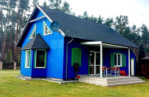 The holiday home "Jagoda" is for 8 people and pets are welcome, fully equipped, in one place for anglers, for water sports enthusiasts, fans of unspoiled nature, riding through forests and lagoon in all seasons. You will then relax in front of the fireplace, which is particularly inviting in the cold months and brings relaxation on the cozy couch. This place is as relaxing for children as it is for adults. You can play, romp, relax or grill on the 2000 sqm plot. Bicycles can be borrowed. A paradise for parents, toddlers or couples who like to relax and want to do nothing. 100 m to the water