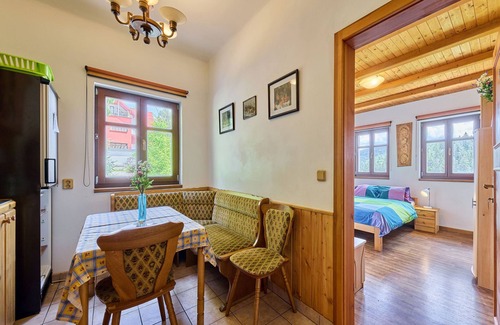 Cosy chalet "Merlin", 3 storeys, detached. In the resort, 300 m from the centre, in a quiet, sunny, elevated position, along the wooded area, 150 m from the skiing area. Private: property. Terrace, barbecue, fireplace, children's playground (sandbox). In the house: sauna (extra). Table football, storage room for skis, central heating system. Parking (for 8 cars) at the house. Shop 80 m, restaurant 150 m, bus stop 300 m, railway station "Svoboda nad Úpou" 3.8 km, park "Farmapark Muchomůrka" 1 km, outdoor swimming pool 5 km, indoor swimming pool 100 m. Golf course (18 hole) 7 km, tennis 800 m, minigolf 300 m, walking paths from the house, cycle lane 100 m, chair lift 150 m, gondola lift 600 m, slopes, ski rental, ski school, children's ski school 150 m, sled run 100 m, cross country ski track 200 m. Nearby attractions: lanovka na Černou horu 500 m, lanové centrum 300 m, Janské Lázně Spa 200 m, Stezka korunami stromů 2km, bobová dráha 8 km, Pec pod Sněžkou, Relaxpark, 15 km, Vrchlabí 10 km, Trutnov 12 km, Malá Úpa 20 km, Zoo Dvůr Králové, Adršpach 35, Karpacz 40 km. Well-known ski regions can easily be reached: SkiResort ČERNÁ HORA - PEC 150 m, Mladé Buky 5 km, Horní Malá Úpa 16 km, Špindlerův Mlýn 30 km. Hiking paths: krkonošské naučné stezky. Please note: the owner lives in the same residence.