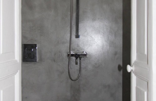- There is a cool en-suite polished concrete wet-room with shower, loo and in-built vanity.