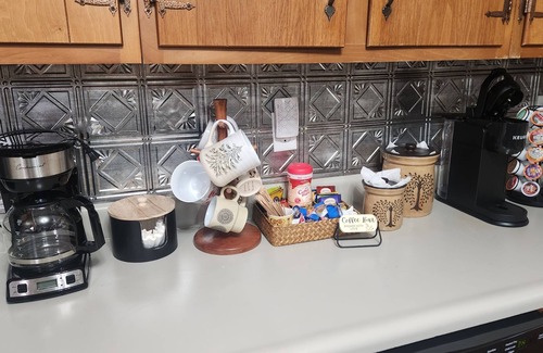 🔶️Pyper's Place is excited to offer a game room that is connected to the rear of the living room. It features 2 arcade machines that have several "old school" games on each. Some of the games include Ms. Pac-Man, Galaga, Street Fighter, Commando, and many others! There is also an air hockey table, and a 55" TV with an original vintage PS1 (with games), and a new model Nintendo with over 600 retro games pre-installed in the console. The game room also has a selection of books for those who might like a relaxing evening with a good read. The game room couch also folds out into a double bed for extra sleeping space!