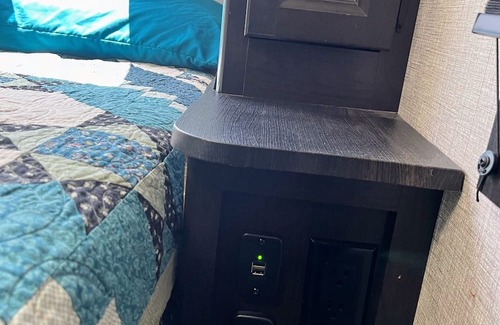 The bunk beds are great for multiple small children or can hold two adults. There are USB charging stations in the bed areas as well.