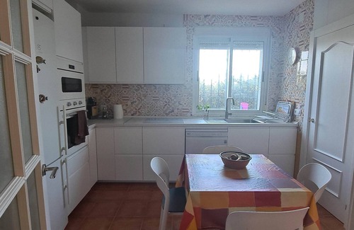 Fully equipped with large fridge freezer, vitocerámica cooker, electric oven, dishwasher. microwave, toaster, coffee maker, grill, extractor, juicer, electric jug,