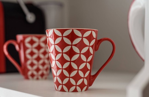 Kitchen equipped with dishes, oven, fridge/freezer, coffee machine