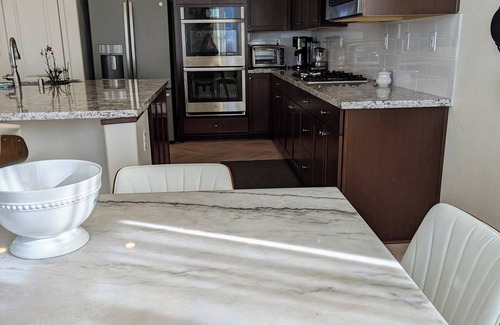 This Reno house boasts 3 inviting bedrooms, including 1 king bed and 2 queen beds. With 3 bathrooms equipped with amenities like a hair dryer, shower, and bathtub, guests will feel right at home. The kitchen is equipped with everything you need to make a great dinner. The upstairs living room has an 85 inch smart Tv. The additional living room space with a queen bed provides a tremendous amount of comfort for relaxation. Fall in love with Reno and enjoy the magic it has to offer.