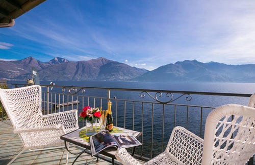 Enjoying close proximity to the famous attractions, activities and golden triangle towns of Lake Como this beautiful lakeside villa with a boat mooring buoy is situated along the tranquil San Siro shore, and boasts private outdoor grounds perfect for medium-sized groups and families.