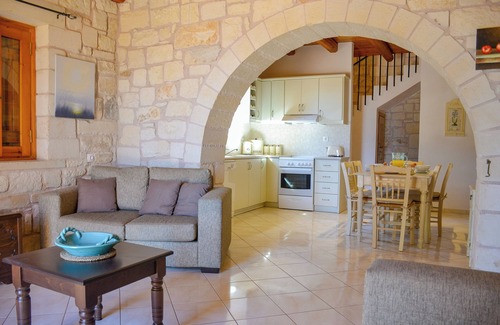 Villa Almyros is a beautiful stone villa with uninterrupted panoramic views across Almyros Bay towards Rethymon and the mountains beyond. Located in an idyllic position 0.5km from the ancient village of Kefalas where you will find tavernas and local shops providing for your every day needs. There is a fully fenced and gated pool at this villa.