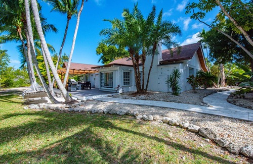 Ready to relax in a fun, secluded environment? These two retreats on the Pelico Palms property are ready to host your next getaway. Hang out by the shared, heated pool, complete with a Tiki hut, an outdoor bar, and a screened-in game room with Ping-Pong and Foosball tables! Cook up something delicious on the private gas grill and then enjoy it on the spacious deck (if you can manage to get out of the relaxing hammock). The villa houses four comfortable bedrooms plus a fun loft, while "the Treehouse" is a lovely two-bedroom space with a queen-size bed. The downstairs bedroom has two twin beds and a private bathroom. No matter where you decide to sleep, you'll be taken care of by central air conditioning and either a kitchenette or access to a full kitchen. The great room in the villa is tastefully decorated and is big enough for everyone to come together and share stories from the day on the sofa. The property truly steps you back in time to the old Florida Keys, with ties to the fabled drug trades of the 1970’s and 1980’s.