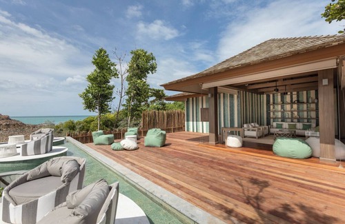 Discover the ultimate escape at Villa Baiyoke, where every detail has been thoughtfully designed to elevate your stay. Set on the tranquil higher grounds of Cape Fahn Hotel, this spacious 350 sq.m. villa offers breathtaking sea views framed by the gentle embrace of surrounding trees. Begin each day with the sun sparkling over your private 3 x 10.3 m pool, relax on your expansive terrace with plush sun loungers, and enjoy the serene ambience of your surroundings.