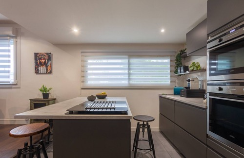 The highlight of this accommodation is its private outdoor area with a fenced pool, a whirlpool, a garden, 2 open terraces, a grill and a griddle, an outdoor bar, and an outdoor shower.
