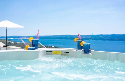 The villa’s sleek design is complemented by large glass walls that bring in plenty of natural light and allow uninterrupted views of the surroundings. The outdoor space is equally inviting, with a heated infinity swimming pool that seems to merge with the sea, a jacuzzi, and a lounge area perfect for relaxing under the Croatian sun. Sun loungers, umbrellas, and an outdoor shower ensure comfort by the pool, while the grill and dining area make it easy to enjoy meals outdoors.