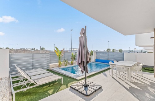 The villa is located close to an 18-hole golf course, a bus stop to Torrevieja and other public transport links, an ATM, a supermarket, restaurants, and an Irish pub.