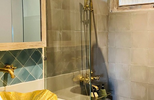 First Floor- Bedroom with queen-size bed and en-suite bathroom with walk-in shower and bathtub- Bedroom with two single beds and en-suite shower room