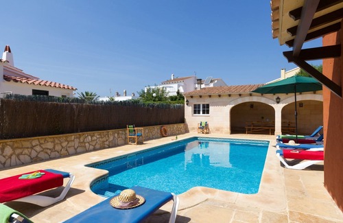 Villa Hegoalde is in a great central position, only 10 minutes' walk from the picturesque Calan Blanes Beach and the shops, restaurants and waterpark in the resort centre. The island's ancient capital town, Ciutadella, is also within a short drive or bus ride, and is well worth seeing. This charming 3 bedroom villa has a private pool and lawned garden, offering plenty of space to relax, with a fantastic poolside BBQ house and alfresco dining area. Air conditioning/heating in the bedrooms, pool heating and WiFi are included.