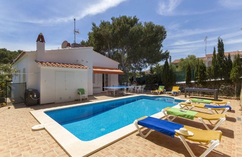 A picturesque 2 minute walk from Villa Jose, through the pine trees, will bring you to Arenal den Castell Beach, one of the best beaches on the entire island! A further 10 minutes along the seafront is the path leading up into the resort centre which is filled with restaurants, cafes and bars. This pleasant 3 bedroom villa has a private pool and includes WiFi, pool heating and air conditioning/heating in the bedrooms.