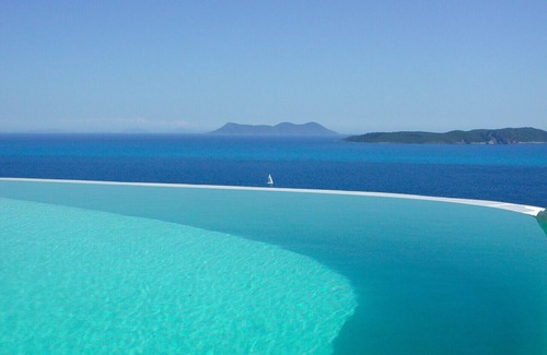 South, you find a dining place under a plant-covered pergola, then on the west side the infinity pool with an incredible sea view with boats sailing on the wind.