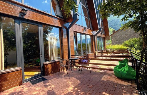 Villa Kazbegi Cottages Three Cottage in One space with 2 Bedroom is located in Stepantsminda. Villa Kazbegi Cottages Three Cottage in One space with 2 Bedroom provides accommodation, featuring Bedding/Linens, Wellness Facilities, Fireplace/Heating, among other amenities. This Cottage features Bedding/Linens, Wellness Facilities, Fireplace/Heating, to make your stay a comfortable one.