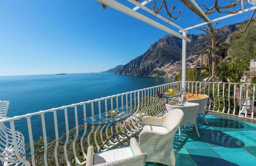 Jaw-dropping views from this cliff-clinging Amalfi Coast villa with an outdoor jacuzzi and direct access to the sea close to Positano centre
