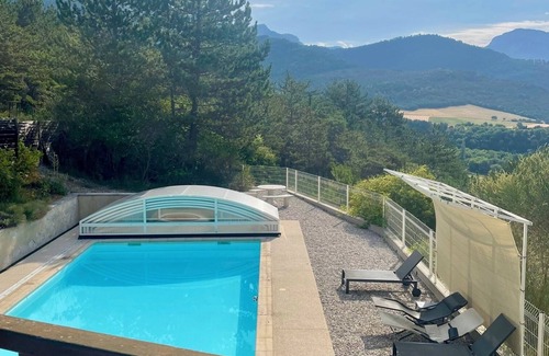 Superb villa in the heart of nature with exceptional views of the Glandasse Massif and the Die Valley, with private outdoor pool. Large outdoor terrace with barbecue - petanque - volleyball -badminton - ping-pong table.