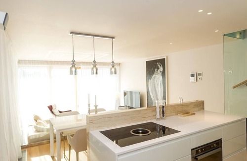 Modern and carefully designed interior in the calming and elegant tones of white and beige colour with carefully added dark details that make fine contrast and give a hint of glamour of old classic Hollywood offers you complete comfort during your stay in order to fulfill all your wishes and meet all your needs.