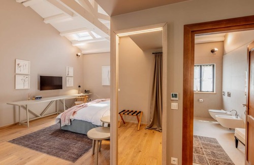 Boasting a secluded garden with a swimming pool overlooking the hotel’s olive groves, the stone villa has been thoughtfully designed to echo the traditional architecture of the stunning coastal region of Croatian Istria. Each morning, you can enjoy a refreshing dip in the cool waters of your private pool with azure skies overhead. If the gentle sea breeze on your shoulders makes you dream of the sparkling Adriatic coastline, the Boho Beach Club by Meneghetti is less than three kilometres away, with a private transfer service arranged by the hotel’s attentive staff. Here, you can unwind in a private beach area with canopied sunbeds, go for a refreshing swim in the ocean or explore hidden inlets and enchanting bays on a boat trip.