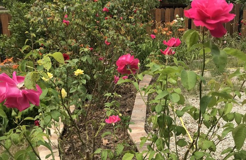 Your private outdoor area includes a fenced pool (open between 11 am and midnight), a garden, and an open terrace.