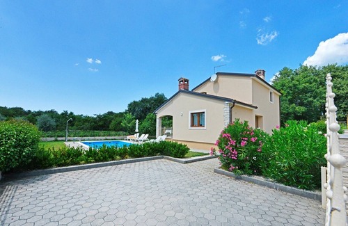Ideal destination for summer holiday in the countryside and near the sea. Beautiful newly built villa with swimming pool for the family, up to 6 people. On the ground floor is a living room combined with dining area and kitchen. The living area is spacious and nicely furnished with modern furniture and additionally equipped with (satellite TV, DVD player and a beautiful fireplace). Living room, kitchen and bedroom, have access to a covered terrace with garden furniture, brick grill, deck chairs and exit to the garden and pool. The kitchen is fully equipped with (electric stove, refrigerator with freezer, dishwasher, a filter coffee maker, toaster, electric kettle.). One bedroom, with a bathroom, is located on the ground floor. And, the remaining, two bedrooms with one bathroom, are located on the first floor. One bedroom has a balcony. Living rooms of the house are air-conditioned. All additional costs are included in the cost of the lease, including Wi-Fi, bed linen, towels and car parking.!