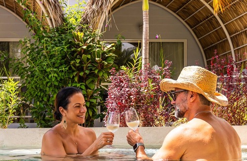Cette petite oasis en banlieue de Tamarindo vous propose une cabina ou un bungalow. Nos chambres décorées avec gout sont équipées d’un lit très grand , de climatisation et literie de qualité. Vous trouverez dans nos aires communes un rancho pour le petit déjeuner et le déjeuner , le rancho de yoga pour la relaxation et notre prestigieuse piscine à chute. Nos bungalows seront votre choix idéal pour y passer quelques jours dans un cadre romantique et intime avec piscine privée, entourée de jardins. Villa Real se trouve a 5 minutes de voitures pour épicerie et petits restaurants, Tamarindo à 15 minutes pour boutiques, plages, restaurants et vie nocturne.