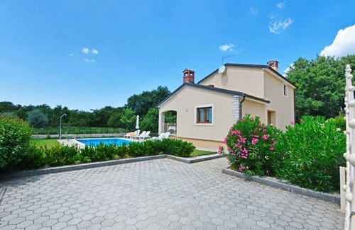 The detached villa built in 2013 and is furnished in a typical country style. The property is located at the end of a cul-de-sac road, on the outskirts. Also due to its sunny location the domicile is popular. Available for your exclusive use: parasol, sun lounger, children's playground, garden shower, barbecue facilities, terrace and garden furniture. bicycle parking spaceLocationRadetići. The villa is located on a 600 sqm enclosed garden plot. The landlord does not live in the house or on the property. Property area: 600 m2 - youth groups not permitted The complex is located in the village of Kmačići near Poreč and is surrounded by beautiful landscapes. The villa's garden is fenced and beautifully decorated - a combination of concrete slabs in the shape of a flower, a meadow and bushes. This villa in Kmačići is warm and modernly decorated. Access is via a side road (asphalted). Parking (for 2 cars) is available on the property. Specialair conditioning, central heating.Facilities: internet access (WLAN), washing machine and dryer. TV reception takes place via satellite. PoolAll pools are available for exclusive use. Outdoor pool (usable from mid May to end of September, 4 m x 6 m, depth 1,5 m). Dogsallowed, EUR 7.00/pet per day. DistancesShopping 1000 m, restaurant 1000 m, town center 20 km. Funtana: doctor, pharmacy each 19 km. railway station 25 km. In summer: Adriatic Sea 19 km in Funtana (beach 20 km in Funtana featuring gravel, stones, rocks and bathing plateaus). DivisionVilla, 2 floors, 4 rooms (including 3 bedrooms), 150 sqm, in total 6 beds. RoomThe entrance to your villa is located on the ground floor, is at ground level and leads directly into the living room. Living room with fireplace, DVD player, CD player, dining area and access to the balcony access to the terrace (covered, garden furniture). 2 bedrooms each with 1 double bed. Bedroom with 1 double bed and access to the balcony. Cooking nook in the living room with dining area (6 seats), gas stove (1 flame), electric stove (1 plate), oven, extractor hood, dishwasher, fridge (15 l, icebox), microwave and coffee machine. Bathroom with shower, 1 washbasin, WC and window. Bathroom with bathtub, dryer, 1 washbasin, WC and window. Terms of lease and pricesIncluded in the priceinternet access, dish towels (06.01.25-01.01.27), internet access (06.01.25-01.01.27), air conditioning (06.01.25-01.01.27), electricity (06.01.25-01.01.27), gas (06.01.25-01.01.27), water (06.01.25-01.01.27), heating (06.01.25-01.01.27), final cleaning (06.01.25-01.01.27), bed linen (06.01.25-01.01.27), hand towels (06.01.25-01.01.27), bathing towels (06.01.25-01.01.27). Side costs-Costs on the spot:/Obligatory:registration fee 5 € per person per stay (06.01.25-01.01.27), local tax by local tariff.Deposit:EUR 200,-/object.