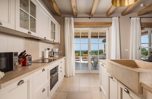 Tastefully decorated villa with infinity swimming pool and a beautiful panoramic sea view and view of the olive groves.